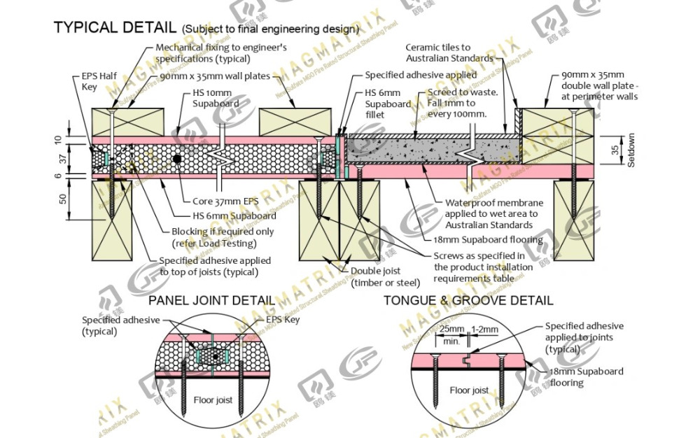 Tá painéil MGO thar barr ag friotaíocht dóiteáin agus ag cosaint taise, rud a fhágann go bhfuil siad oiriúnach do limistéir fhliucha agus d'fhoirgnimh il-theaghlaigh. Is rogha iontaofa é an sraithadhmad i gcónaí lena chóimheas mór le neart-le-meáchan, go háirithe nuair a bhíonn urlár crua-adhmaid agat. Tugann OSB rogha eacnamaíoch duit le neart mór lomadh cothrománach, ach ní mór duit a bheith ag faire amach le haghaidh taise.